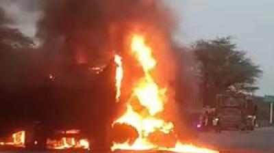 बीकानेर में दर्दनाक हादसा, ट्रक से टकराई बस में लगी आग