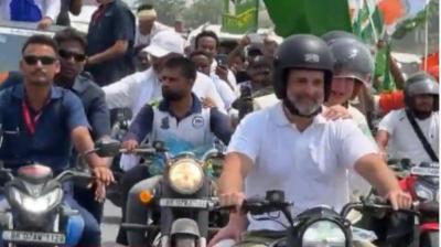 यात्रा के दौरान राहुल ने थामी बाइक की कमान, प्रियंका बनीं साथी