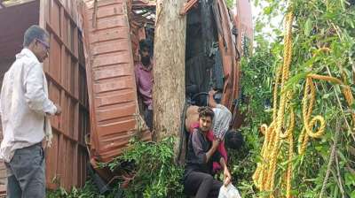 सड़क हादसे में गई 5 जानें ,ट्रक ब्रेक फेल होते ही गिरा खाई में