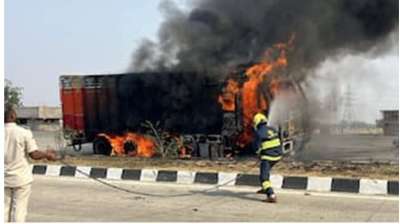 चलते ट्रक में अचानक लगी आग, NH-44 पर मचा हड़कंप
