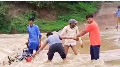 पुलिया पर उमड़ा तेज बहाव, बुजुर्ग दंपति और बेटा बाल-बाल बचे