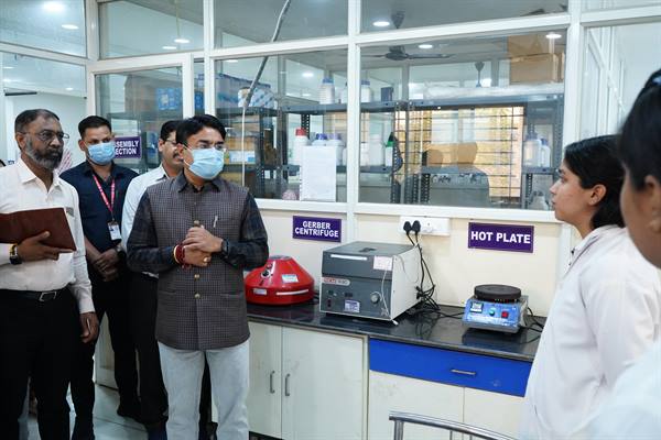 राज्य मंत्री पटेल ने प्रयोगशाला की कार्यप्रणाली, परीक्षण प्रक्रियाओं, उपकरणों और गुणवत्ता मानकों की विस्तृत जानकारी ली तथा बेहतर पारदर्शिता, कार्यक्षमता और सटीक परिणाम सुनिश्चित करने के निर्देश दिए। उन्होंने प्रयोगशाला में कार्यरत रसायन वैज्ञानिकों एवं विश्लेषकों से संवाद कर राज्य में खाद्य सुरक्षा की वर्तमान स्थिति, चुनौतियों और सुधार की संभावनाओं पर विस्तृत चर्चा की। राज्य मंत्री पटेल ने अधिकारियों को निर्देशित किया कि प्रयोगशाला में सभी परीक्षण कार्य निर्धारित समय-सीमा और मानकों के अनुरूप निष्पादित किए जाएं।