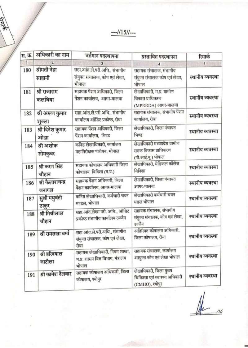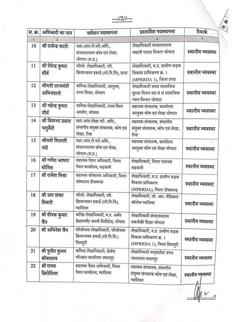 मध्य प्रदेश सरकार ने वित्त विभाग में 191 सहायक संचालकों के ट्रांसफर की प्रक्रिया पूरी की