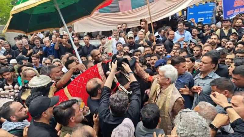मुहर्रम के 10वें दिन यौम-ए-आशूरा पर शहर के डाउनटाउन हिस्से में श्रीनगर के बोटा कदल में एक बड़ा शोक जुलूस निकाला जाता है. काले कपड़े पहने शोक मनाने वाले लोग शोकगीत (मरसिया) पढ़ते हैं और कर्बला के शहीदों के साथ एकजुटता दिखाते हैं. सिन्हा जुलूस में शामिल हुए और शोक मनाने वालों के बीच पानी भी बांटा.