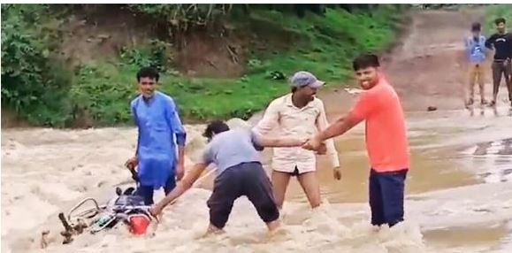 पुलिया पर उमड़ा तेज बहाव, बुजुर्ग दंपति और बेटा बाल-बाल बचे