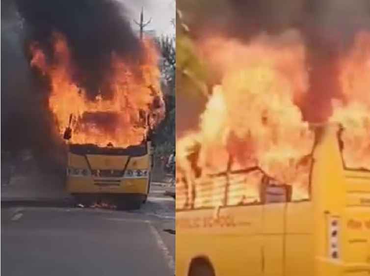 School Bus Fire: इंदौर में बड़ा हादसा टला, आग की लपटों में घिरी बस से सभी बच्चों को सुरक्षित निकाला गया