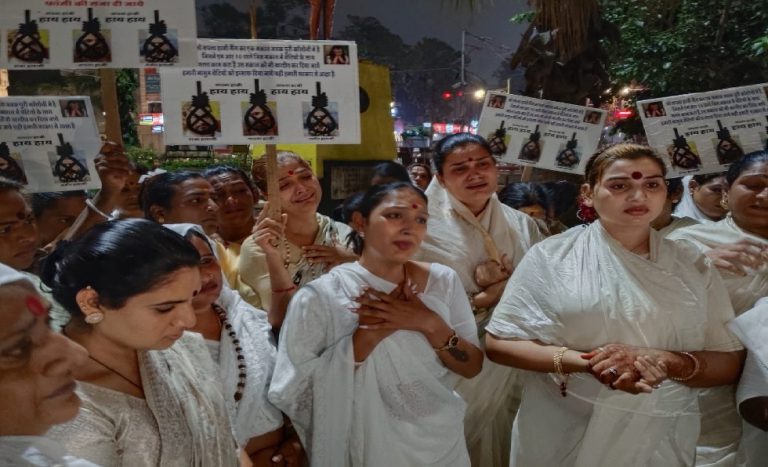 इंदौर में किन्नरों के बीच चल रहे विवाद में नया मोड़, एक समूह के किन्नरों ने गांधी प्रतिमा पर बनाई मानव श्रृंखला