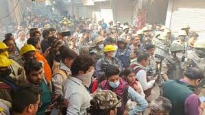 भारी पुलिस बल की मौजूदगी में ध्वस्तीकरण