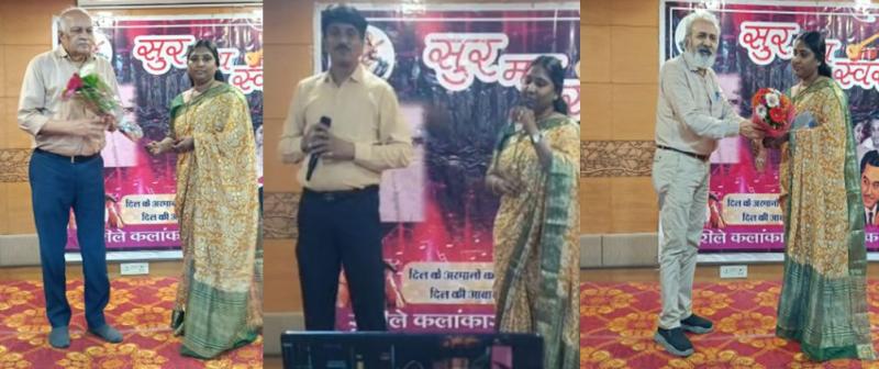 भोपाल । भोपाल में गत रात्रि से ही एक अंतरंग संगीत समागम में भारतीय सुगम संगीत ने सभी नौ-रस की वर्षा कर मेहफिल के मेहमानों को विभोर कर दिया । इसका आयोजन राजधानी की जानीमानी कोयल-कंठी गायिका नंदिनी सोमानी ने अपने मशहूर बैनर तले किया । इसका नाम है—“सुर मय स्वर ।” मेहफिल शाम 5 बजे से रात 11 बजे तक चली । क़रीब दो दर्जन गायक और गायिकाओं ने समाँ बाँध दिया । कार्यक्रम के मुख्य अतिथि थे मुख्यमंत्री