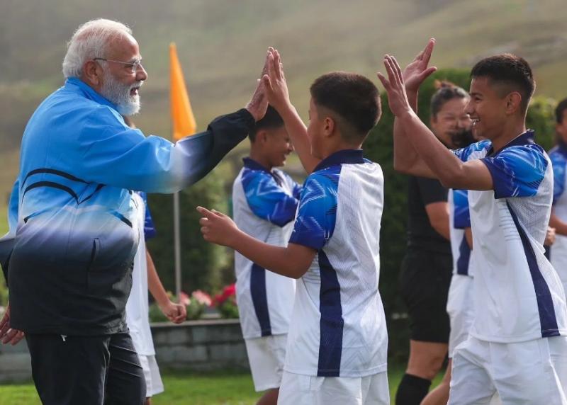 Gangtok में PM मोदी का युवा कनेक्शन, फुटबॉल खेलते नजर आए